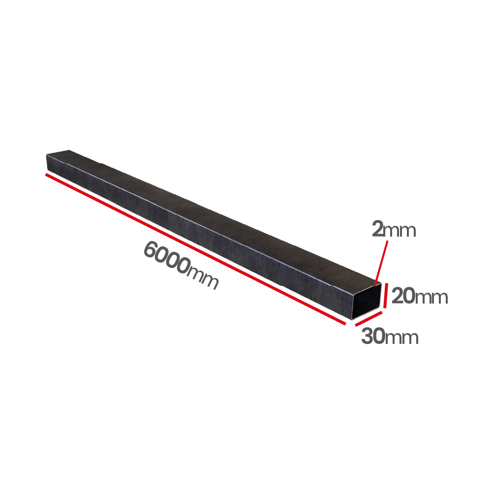 Charakterystyka profilu zamkniętego ze stali czarnej o wymiarach 30x20x2x6000